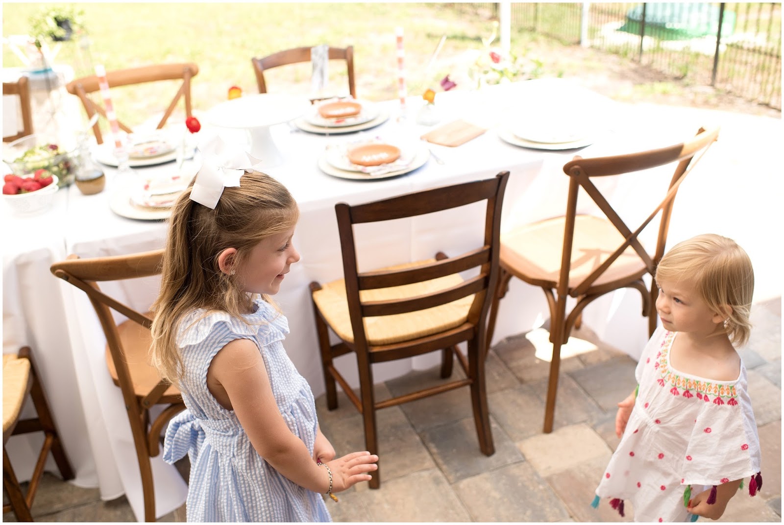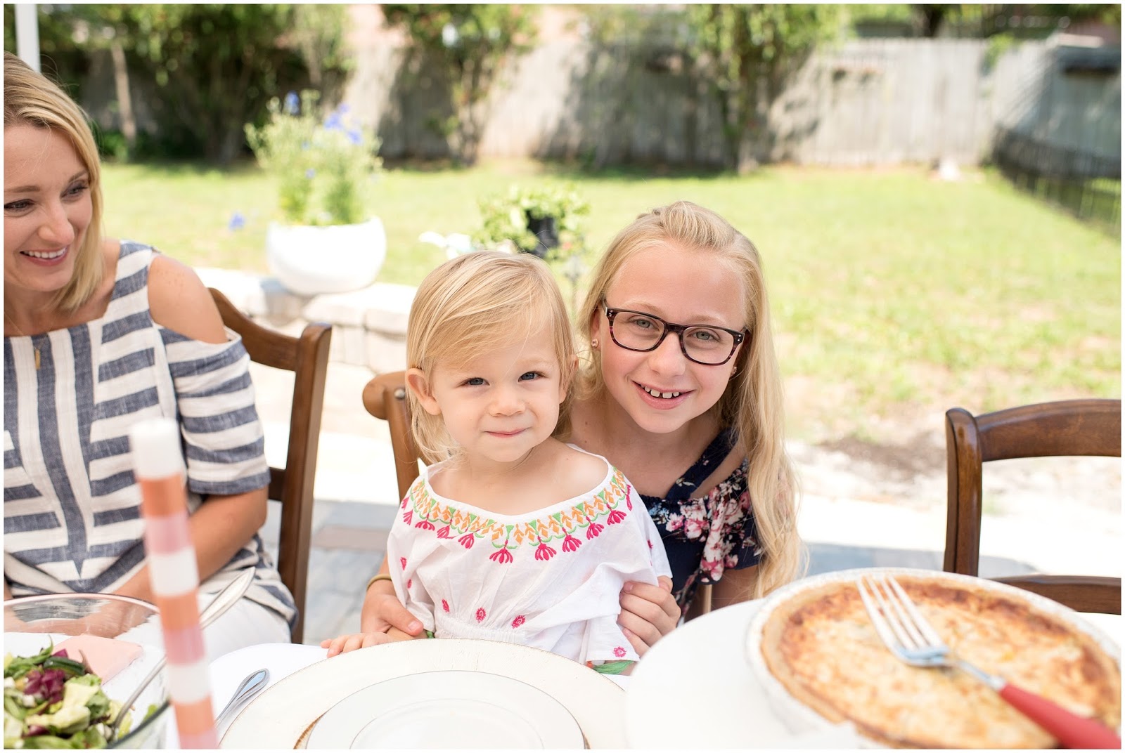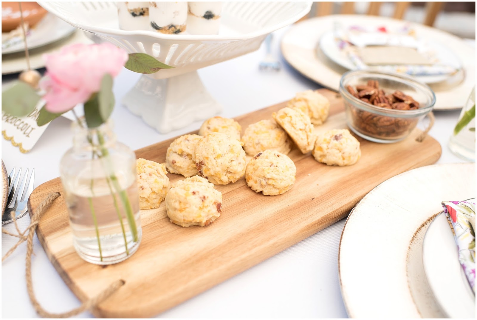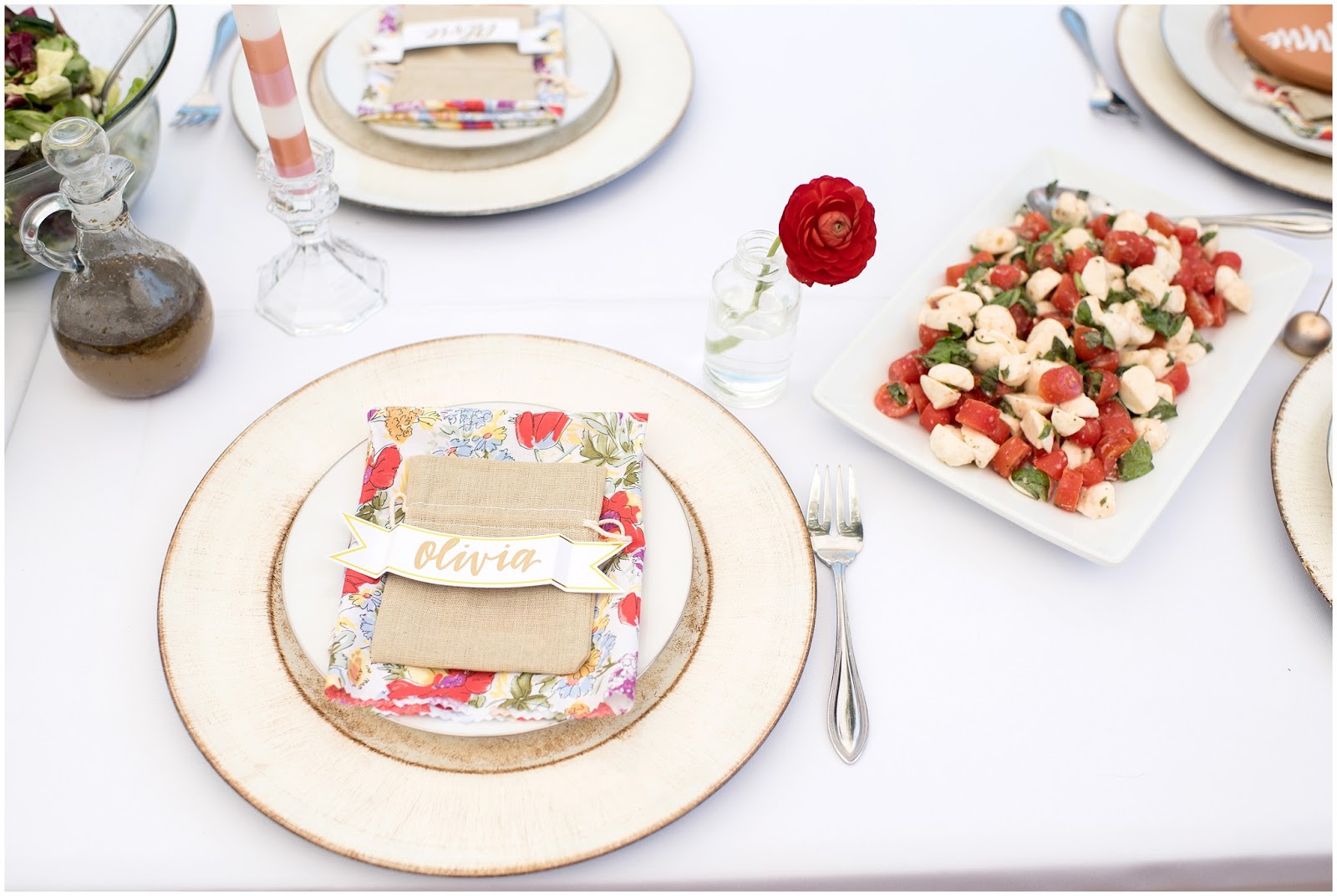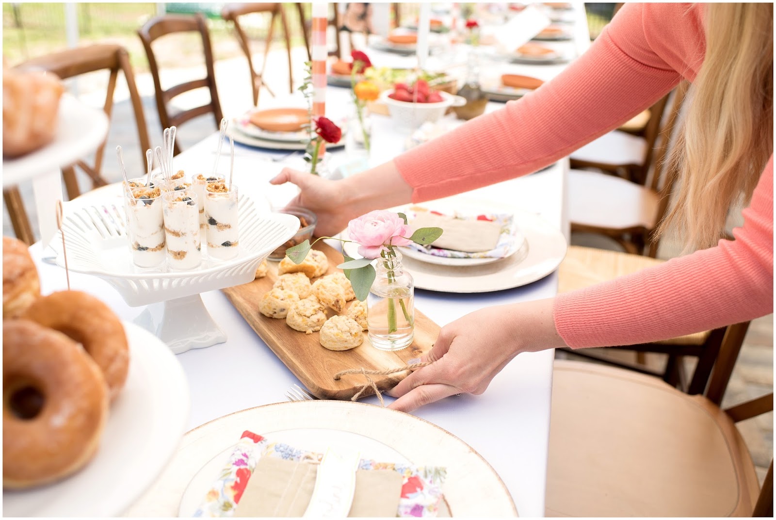 Some of my favorite elements of the brunch were the individual terracotta plates with guest names on them that I collaborated with LMS Creative Studio to create! She also hand lettered a beautiful framed sign with the quote: “HERE’S TO STRONG WOMEN, MAY WE KNOW THEM, MAY WE RAISE THEM, MAY WE BE THEM.” Which really was the inspiration for this entire celebration. I even made the sweet little vintage inspired cloth napkins! One of the details I am most proud of was the photo I had printed of each of the honored guests and who looks up to them as their role model, their children!