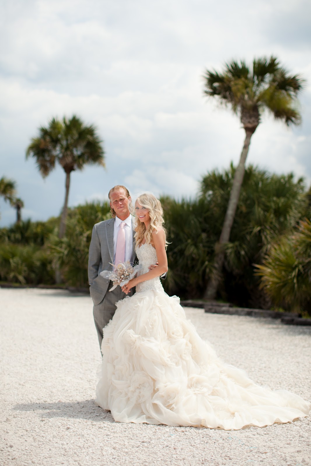 On their wedding day, everything was completely beautiful. Even though the weather made a few things difficult, I wish I could control the wind and rain, her dream for an outside and beachfront ceremony came true. I was so happy to put together her centerpieces, which were so perfect, simple, and all white – which gave it a very elegant touch.