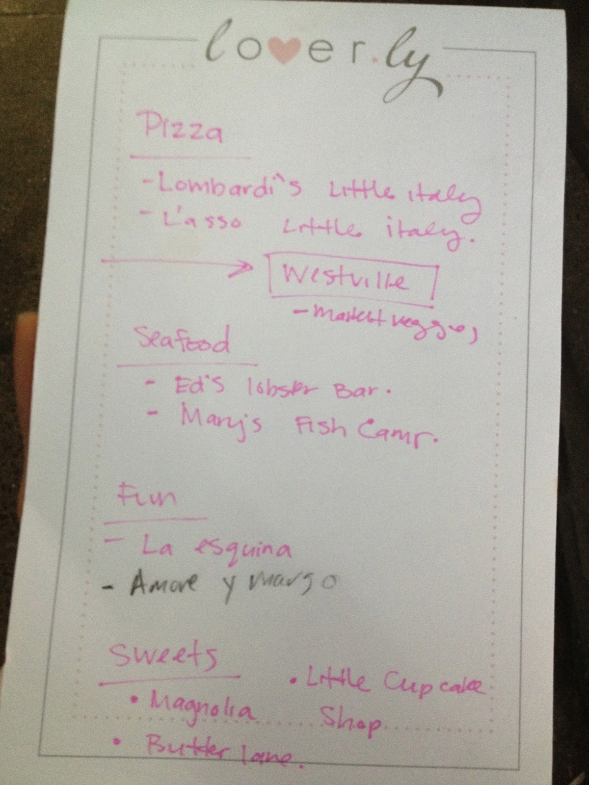 My very own Lover.ly swag, a note pad and a long list of restaurants I need to try!